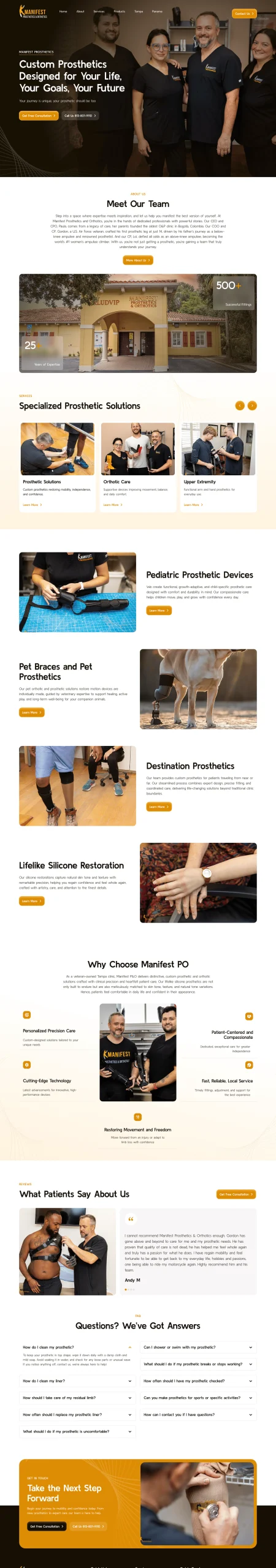 At Numanwebs, we engineered a trust-driven and highly functional digital platform for Mankat P&O, a clinic dedicated to restoring mobility through custom prosthetic and orthotic solutions. Our mission was to create an online presence that balances technical expertise with human empathy. We began with a professional design phase, utilizing a warm gold and charcoal palette to signify quality, innovation, and a bright future for patients. Following the design, our development team focused on creating a comprehensive resource hub, integrating detailed sections for pediatric care, pet prosthetics, and bionic technology, alongside a streamlined “Meet Our Team” and patient FAQ portal. This project highlights Numanwebs’ ability to build sophisticated, life-changing platforms for specialized medical providers.