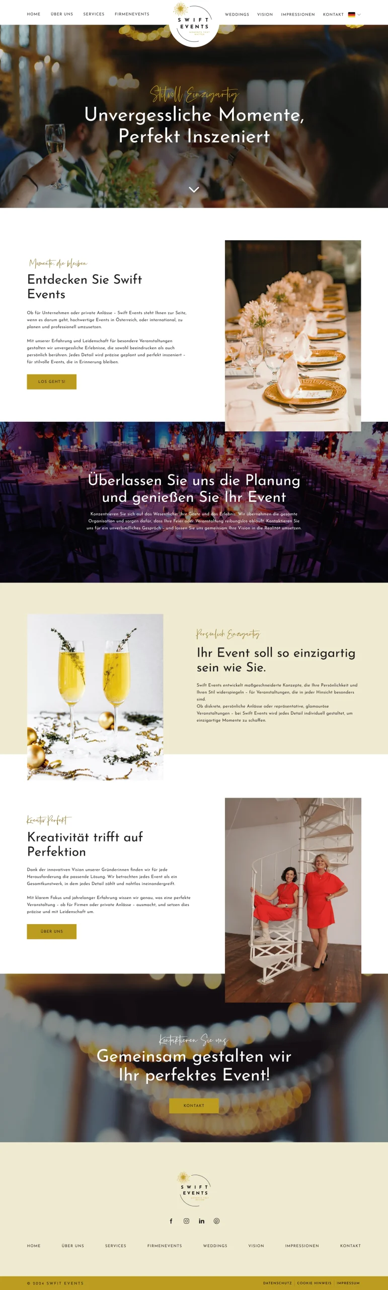 At Numanwebs, we engineered a sophisticated and visually enchanting digital home for Swift Events, an agency dedicated to creating “Unforgettable Moments, Perfectly Staged.” Our mission was to build a platform that reflects their passion for elegance and meticulous planning. We began with a luxurious design phase, utilizing a soft gold and cream palette to convey a sense of high-end celebration and timeless style. Following the design, our development team focused on an immersive user experience, integrating a diverse portfolio section for weddings and corporate events, a “Vision & Creativity” showcase, and a streamlined contact portal for personalized consultations. This project highlights Numanwebs’ ability to build elegant, high-impact platforms for the event industry that prioritize aesthetic perfection and emotional connection.